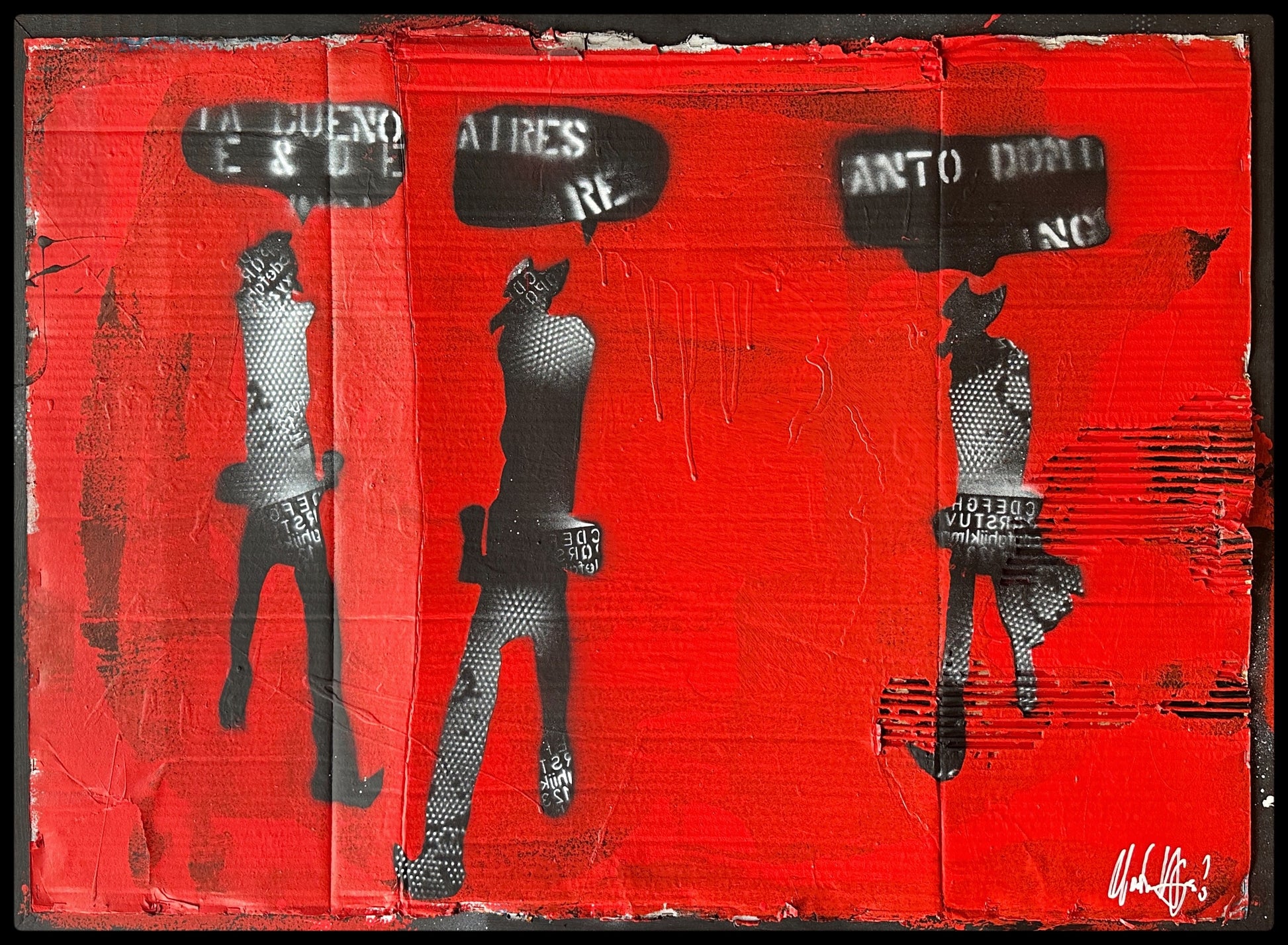 Akryl på resirkulert pappemballasje. Supercool finish, med dybde og grov struktur, industriell look.