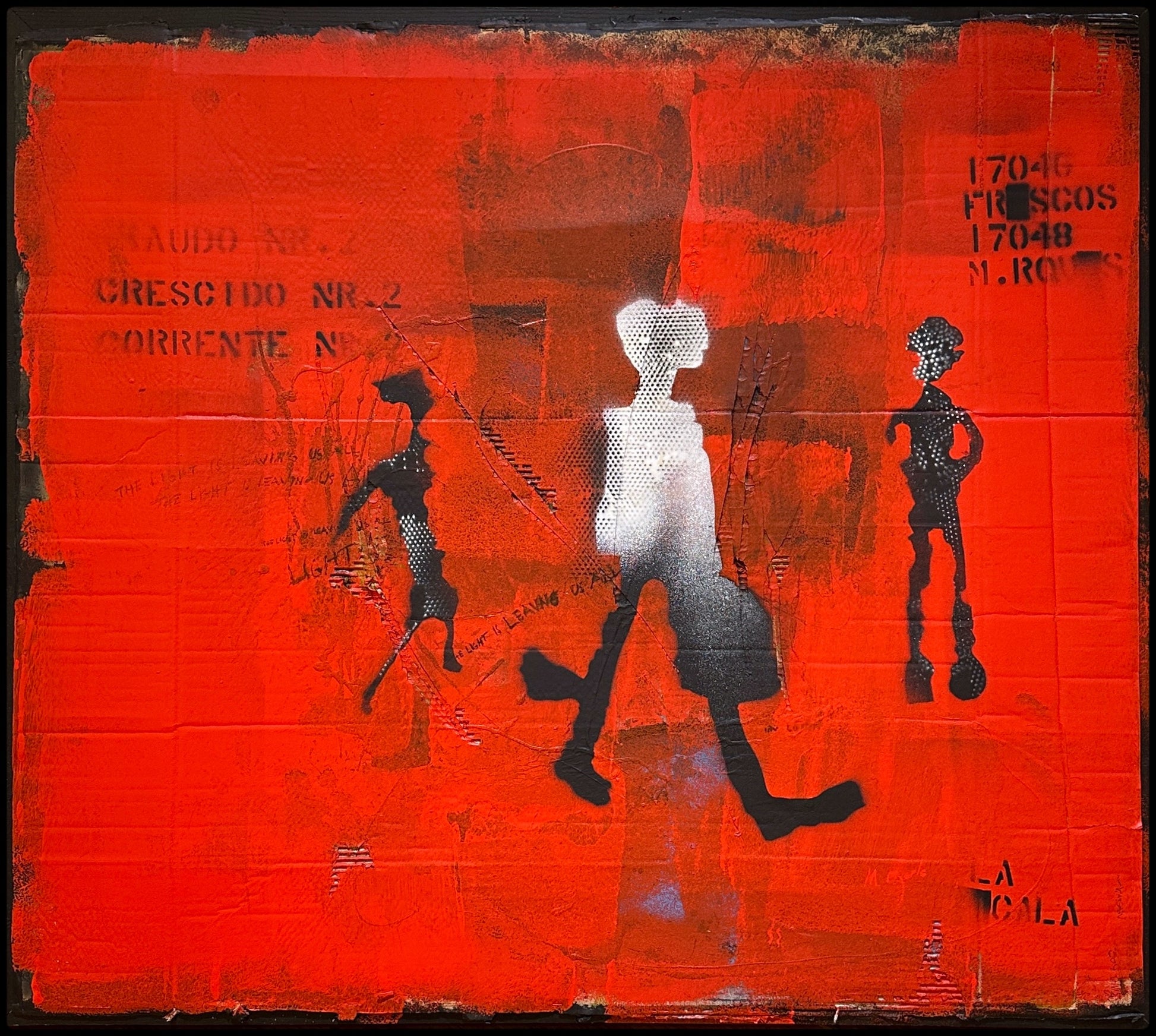 Akryl på resirkulert pappemballasje. Supercool finish, med dybde og grov struktur, industriell look.